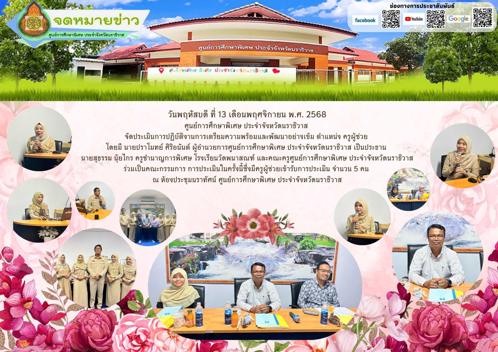 วันพฤหัสบดี ที่ 13 เดือนพฤศจิกายน พ.ศ. 2568 ศูนย์การศึกษาพิเศษ ประจำจังหวัดนราธิวาส จัดประเมินการปฏิ