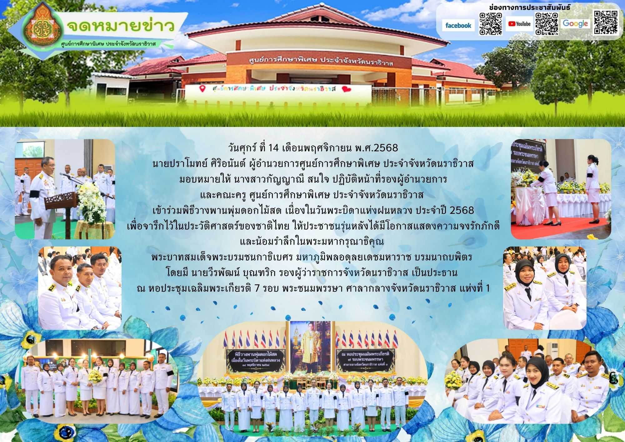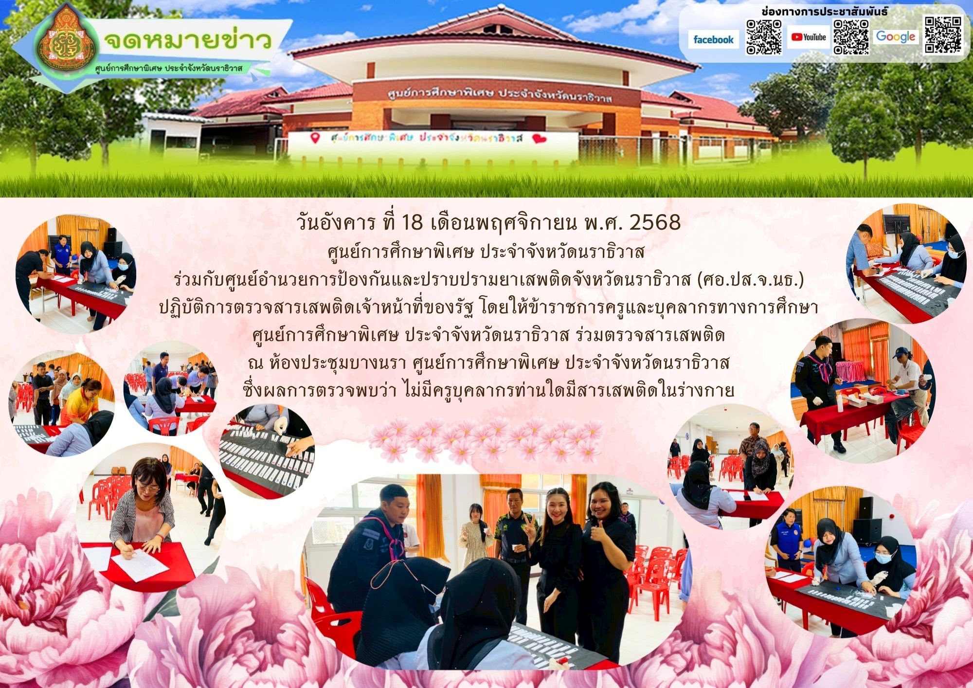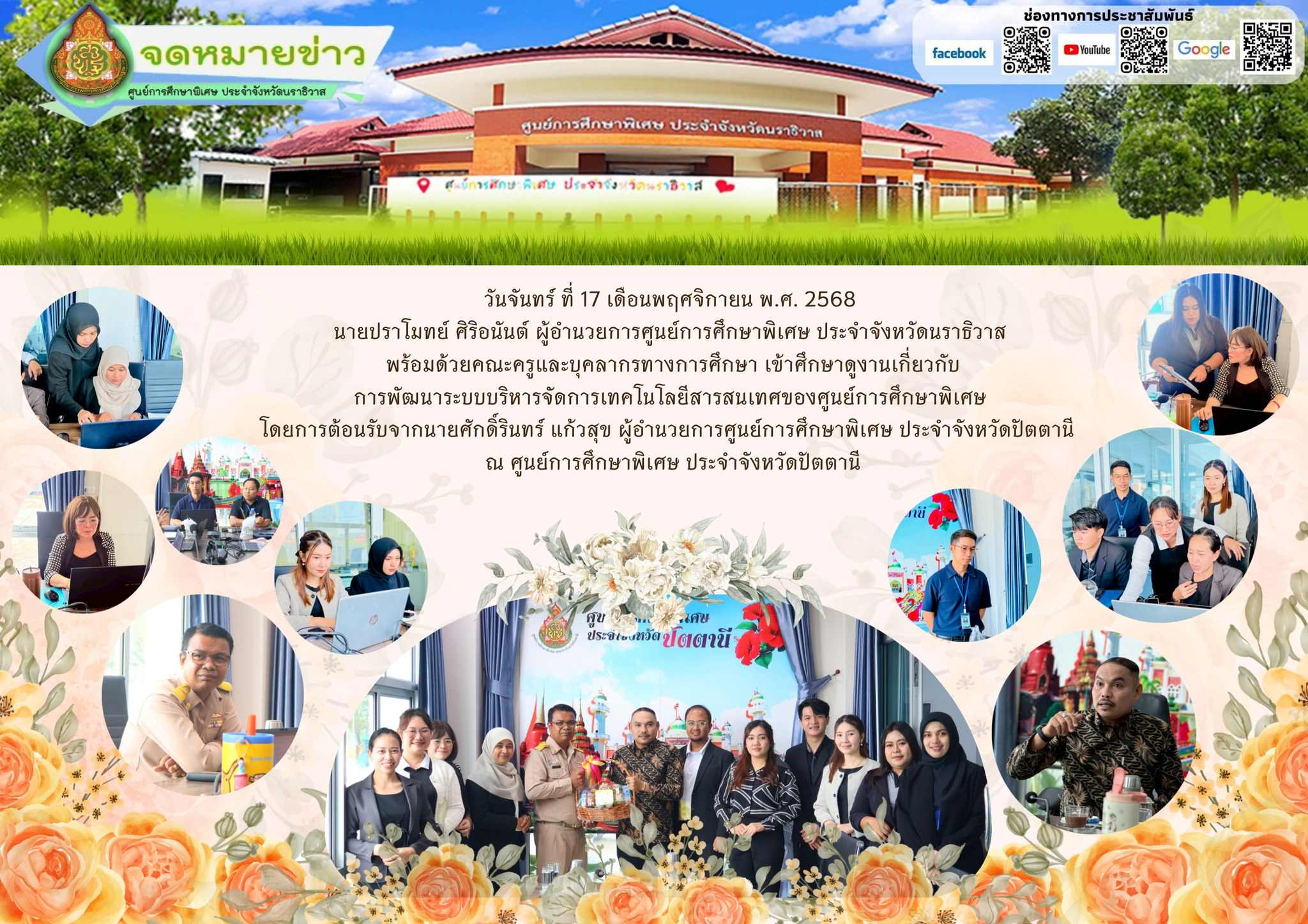 วันอังคาร ที่ 18 เดือนพฤศจิกายน พ.ศ. 2568 ศูนย์การศึกษาพิเศษ ประจำจังหวัดนราธิวาส ร่วมกับศูนย์อำนวยก