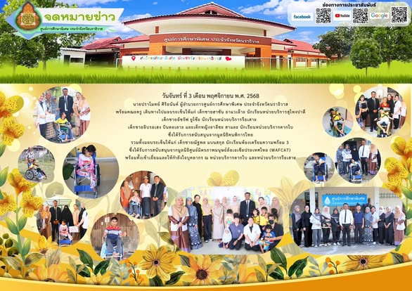 ประกาศศูนย์การศึกษาพิเศษ ประจำจังหวัดนราธิวาส เรื่อง รายชื่อผู้ได้รับทุนการศึกษาสำหรับเด็กออทิสติกและเด็กพิการในมูลนิธิคุณพุ่ม ประจำปีการศึกษา 2568 28 ส.ค. 68