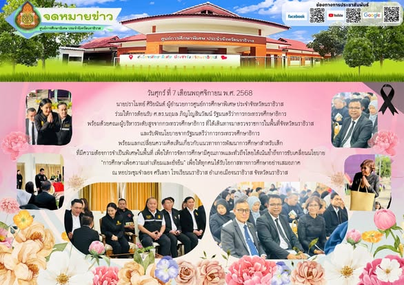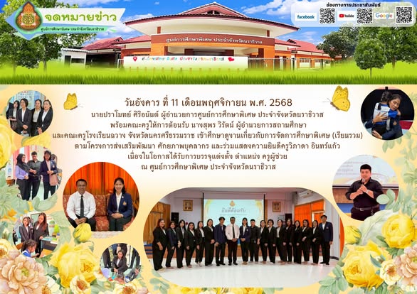 ยินดีต้อนรับเข้าสู่เว็บไซต์ ศูนย์การศึกษาพิเศษ ประจำจังหวัดนราธิวาส