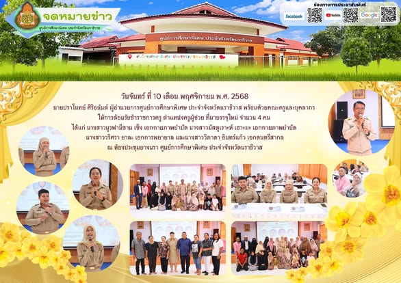 ประกาศศูนย์การศึกษาพิเศษ ประจำจังหวัดนราธิวาส เรื่อง รับสมัครทุนการศึกษามูลนิธิคุณพุ่ม ประจำปีการศึกษา 2568 29 พ.ค. 68