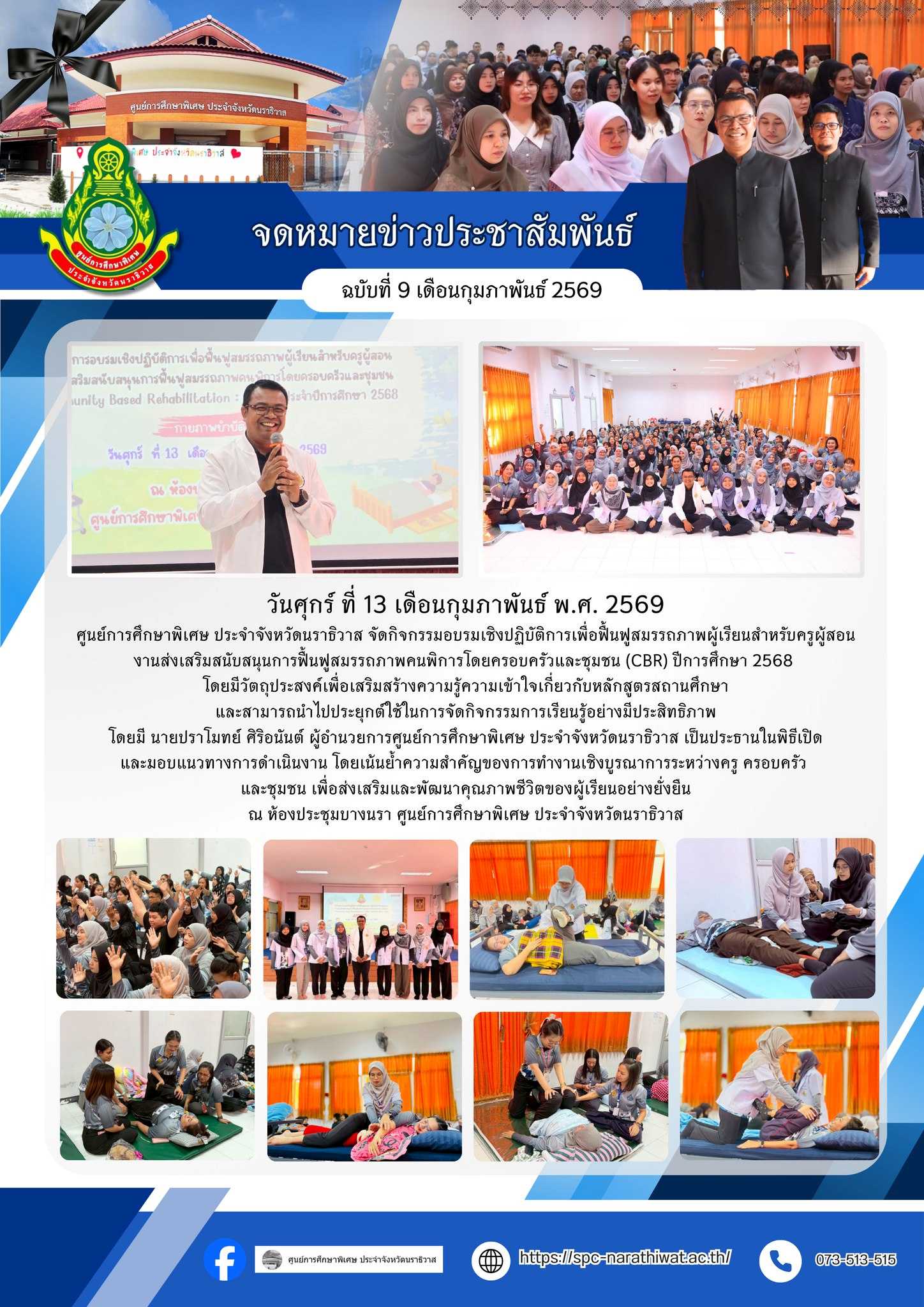 วันศุกร์ ที่ 13 เดือนกุมภาพันธ์ พ.ศ. 2569 ศูนย์การศึกษาพิเศษ ประจำจังหวัดนราธิวาส จัดกิจกรรมอบรมเชิง