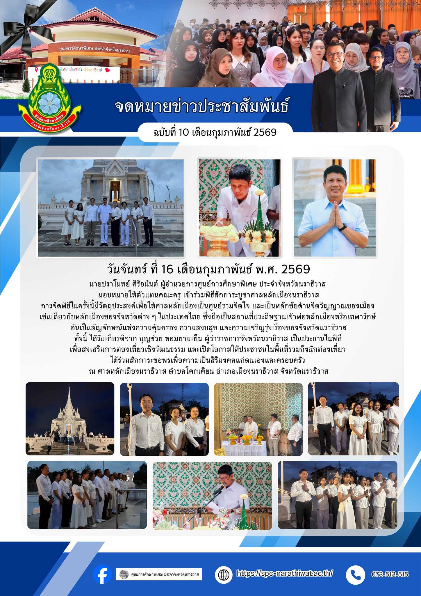 วันจันทร์ ที่ 16 เดือนกุมภาพันธ์ พ.ศ. 2569 นายปราโมทย์ ศิริอนันต์ ผู้อำนวยการศูนย์การศึกษาพิเศษ ประจ