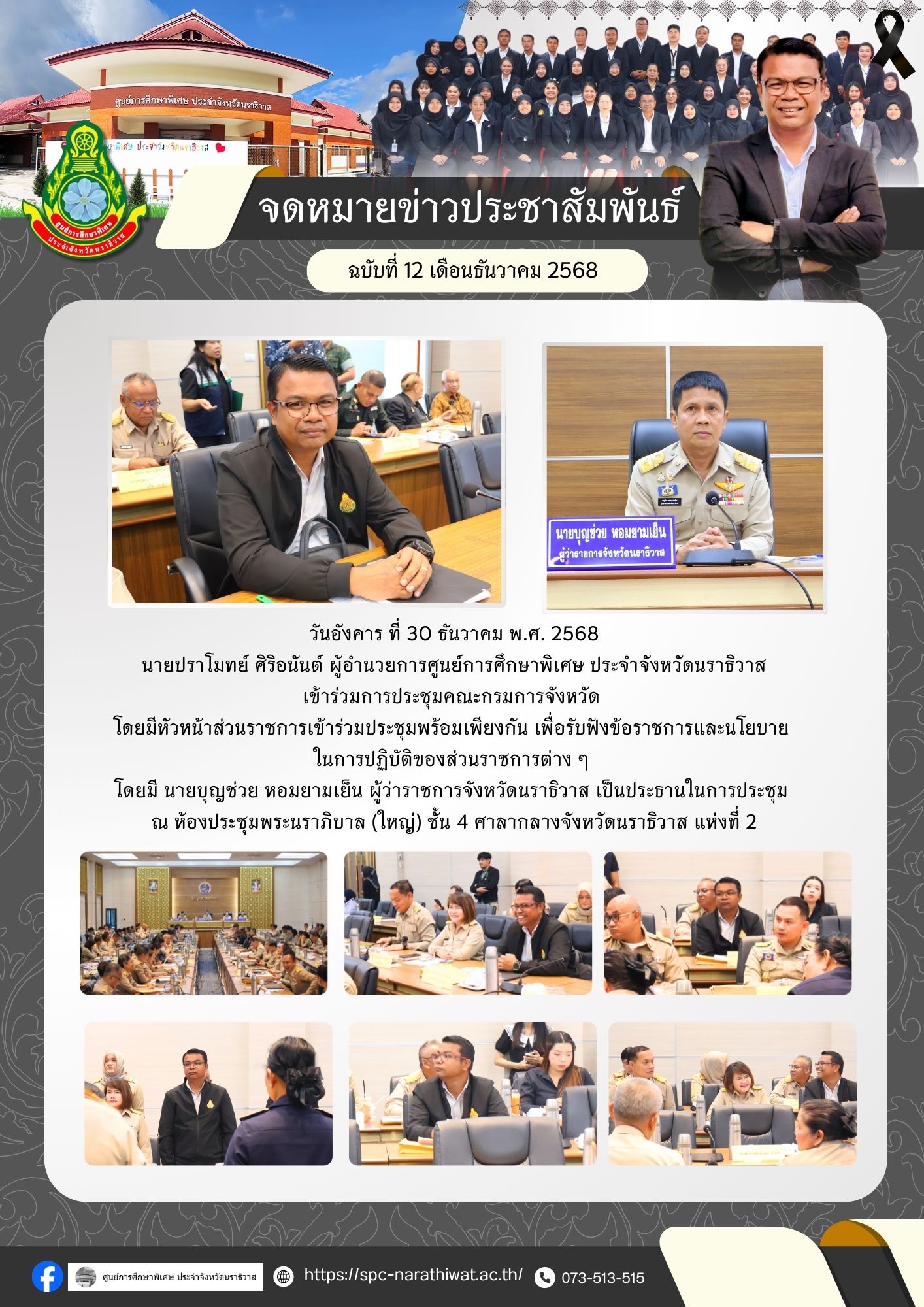 วันอังคาร ที่ 30 ธันวาคม พ.ศ. 2568 นายปราโมทย์ ศิริอนันต์ ผู้อำนวยการศูนย์การศึกษาพิเศษ ประจำจังหวัด