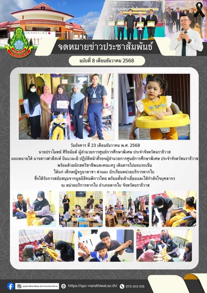 วันจันทร์ที่ 15 เดือนธันวาคม 2568 ศูนย์การศึกษาพิเศษ ประจำจังหวัดนราธิวาส ขอขอบพระคุณ นายบุญช่วย หอม