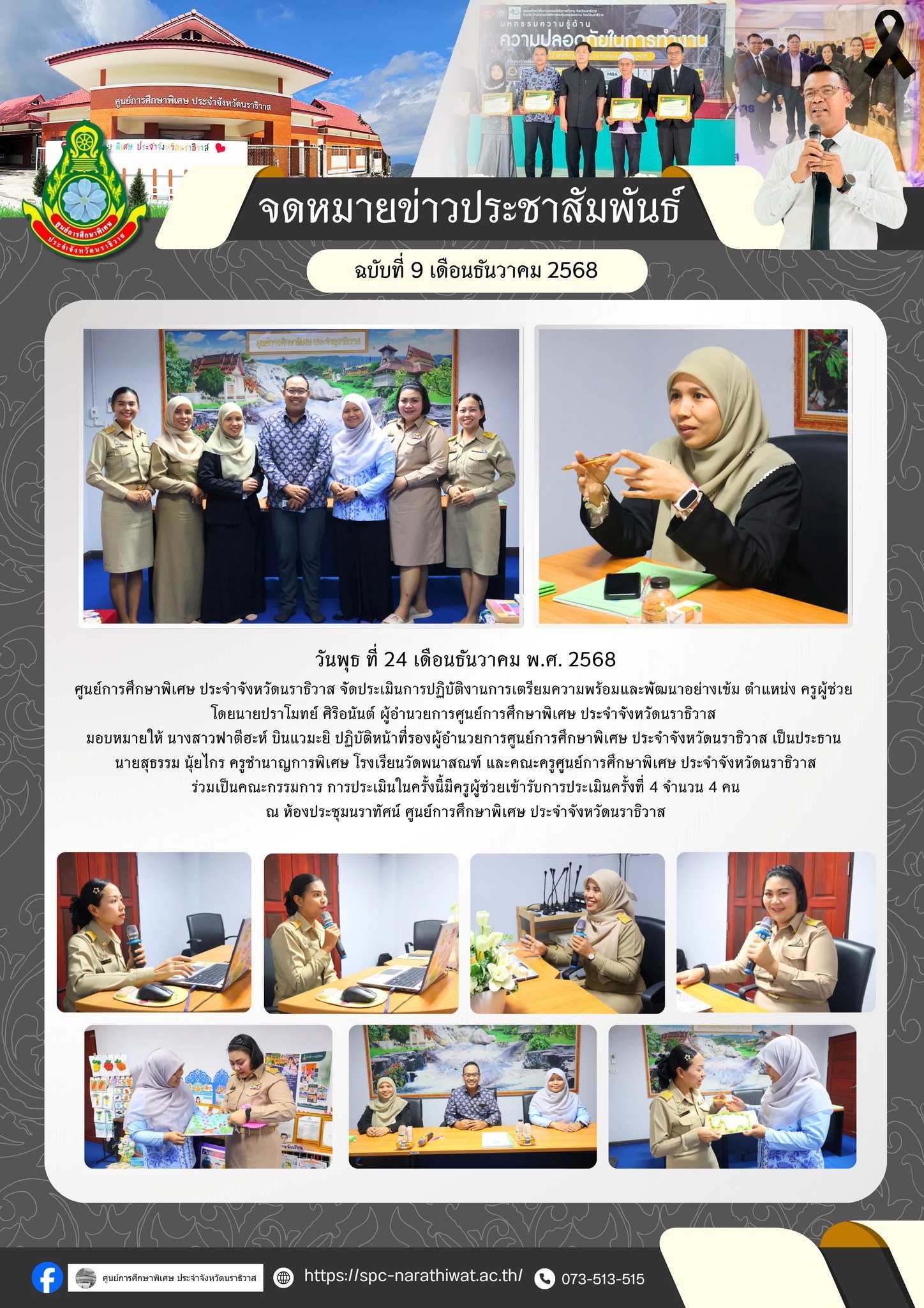 วันพุธ ที่ 24 เดือนธันวาคม พ.ศ. 2568 ศูนย์การศึกษาพิเศษ ประจำจังหวัดนราธิวาส จัดประเมินการปฏิบัติงาน