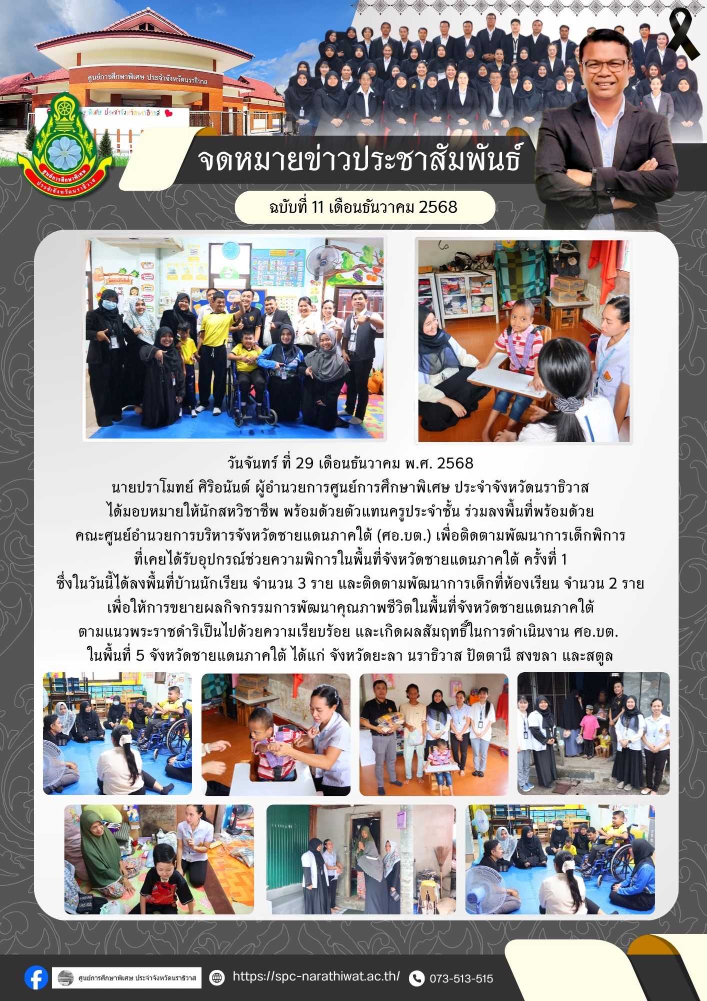 วันพุธ ที่ 17 เดือนธันวาคม 2568 นายปราโมทย์ ศิริอนันต์ ผู้อำนวยการศูนย์การศึกษาพิเศษ ประจำจังหวัดนรา